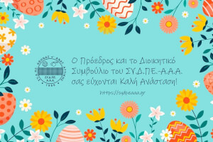Ευχές για το Πάσχα από τον ΣΥ.Δ.ΠΕ. - Α.Α.Α.03-04-2026 15:27Ο πρόεδρος και το διοικητικό συμβούλιο του ΣΥ.Δ.ΠΕ. - Α.Α.Α. σας εύχονται Καλή Ανάσταση και Καλό Πάσχα! |
